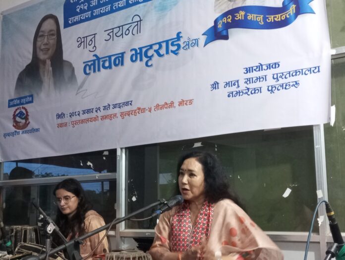 आइतबार साँझ गायक लोचन भट्टराईज्यूको प्रमुख आतिथ्यतामा भएको कार्यक्रममा भट्टराईले भानुभक्तीय रामायण गायन गर्नुका साथै आफ्ना अन्य केही गीत गाएर उपस्थित कलाप्रेमीलाई मुग्ध बनाउनुभएको थियो ।
