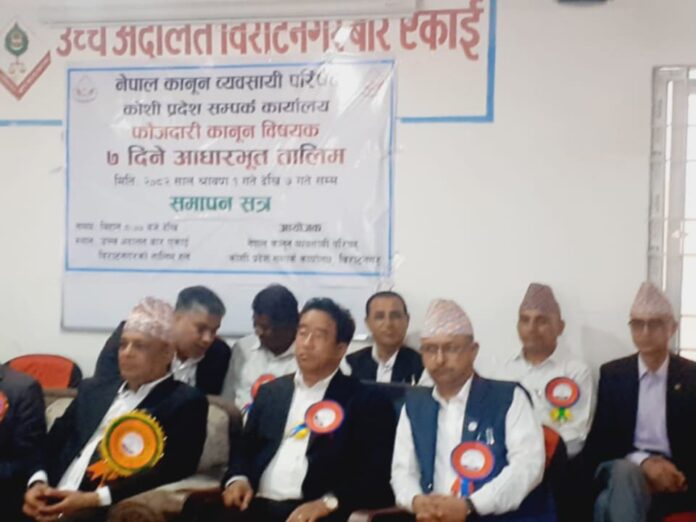 विराटनगरः साउन १ गते शुरु भएको फौजदारी कानुनका विविध विषयको आधारभूत तालिम विराटनगरमा बुधबार सम्पन्न भएको छ ।