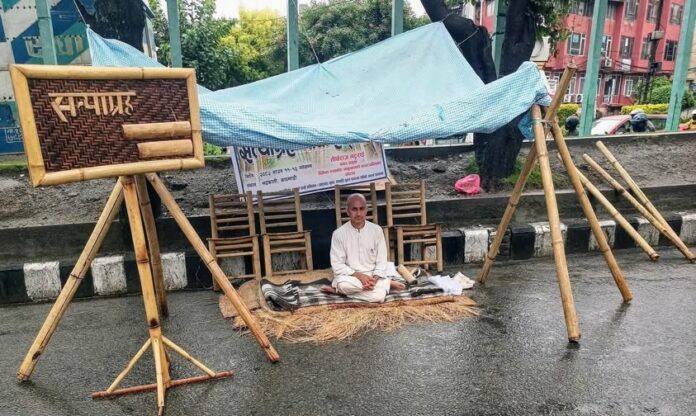 सत्याग्रहमा बस्नुअघि पशुपतिमा कपाल मुण्डन गरेपछि खाली खुट्टा हिँडेर उहाँ सिंहदरबारको दक्षिण ढोका पुग्नुभएको थियो । बाँसका सामग्रीसहित सिंहदरबार परिक्रमा गर्ने प्रयास असफल भएपछि उहाँले माइतीघर मण्डलामा बाँसका सामग्री प्रदर्शनसँगै सत्याग्रह शुरु गर्नुभएको हो ।