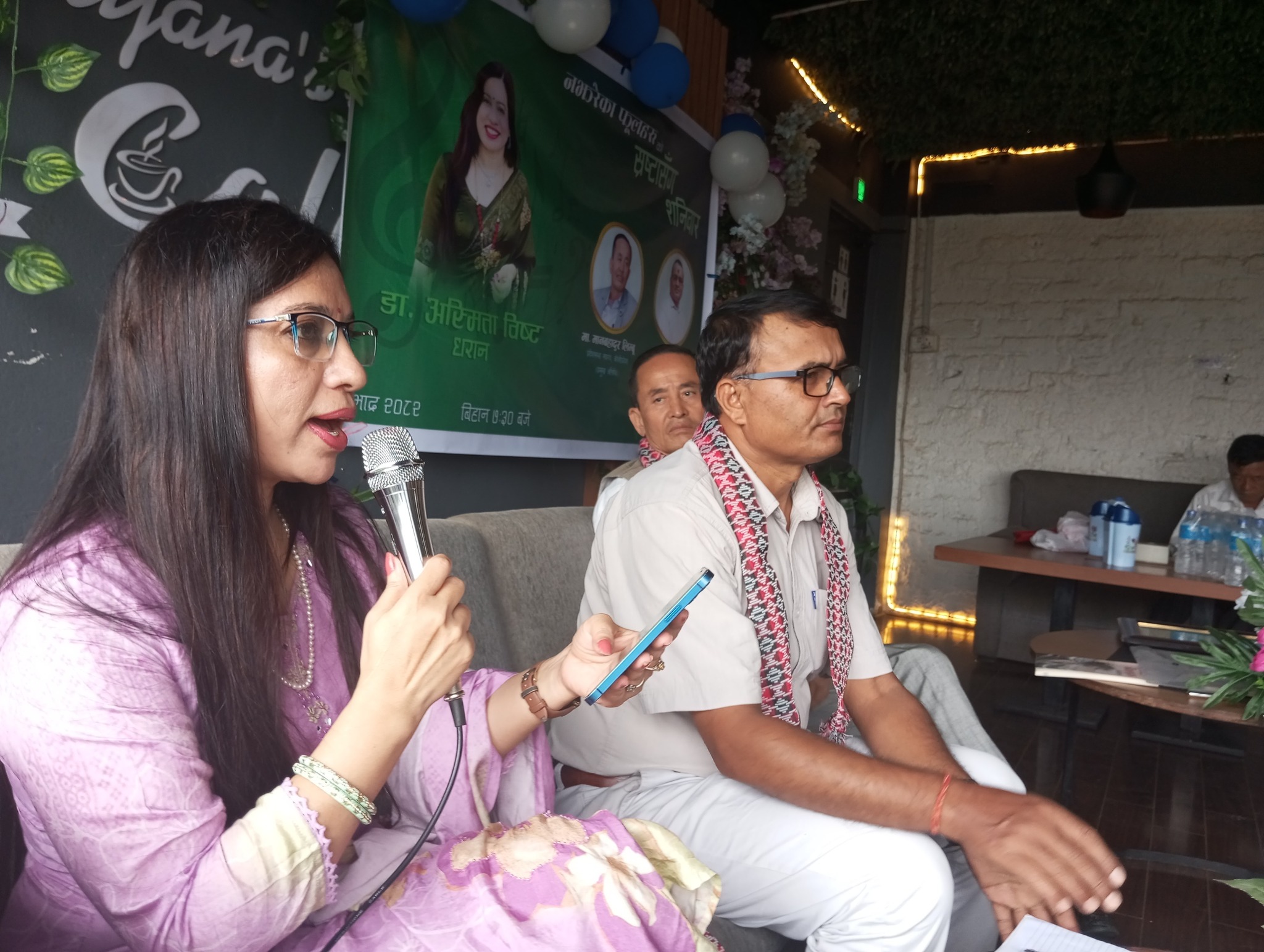 प्रदेश सांसद मानबहादुर लिम्बूको प्रमुख आत्थ्यिता तथा साहित्यकार डा. दीपक न्यौपानेको अध्यक्षतामा भएको कार्यक्रममा स्वागत मन्तव्य व्यक्त गर्नुभएको थियो । सुन्दरहरैंचा–१० खोर्सानेमा रहेको सृजना क्याफे एण्ड रेष्ट्रोमा भएको कार्यक्रममा धरान, इटहरी, केराबारी, बेलबारी र सुन्दरहरैंचाका साहित्यकारहरुको उपस्थिति रहेको थियो ।