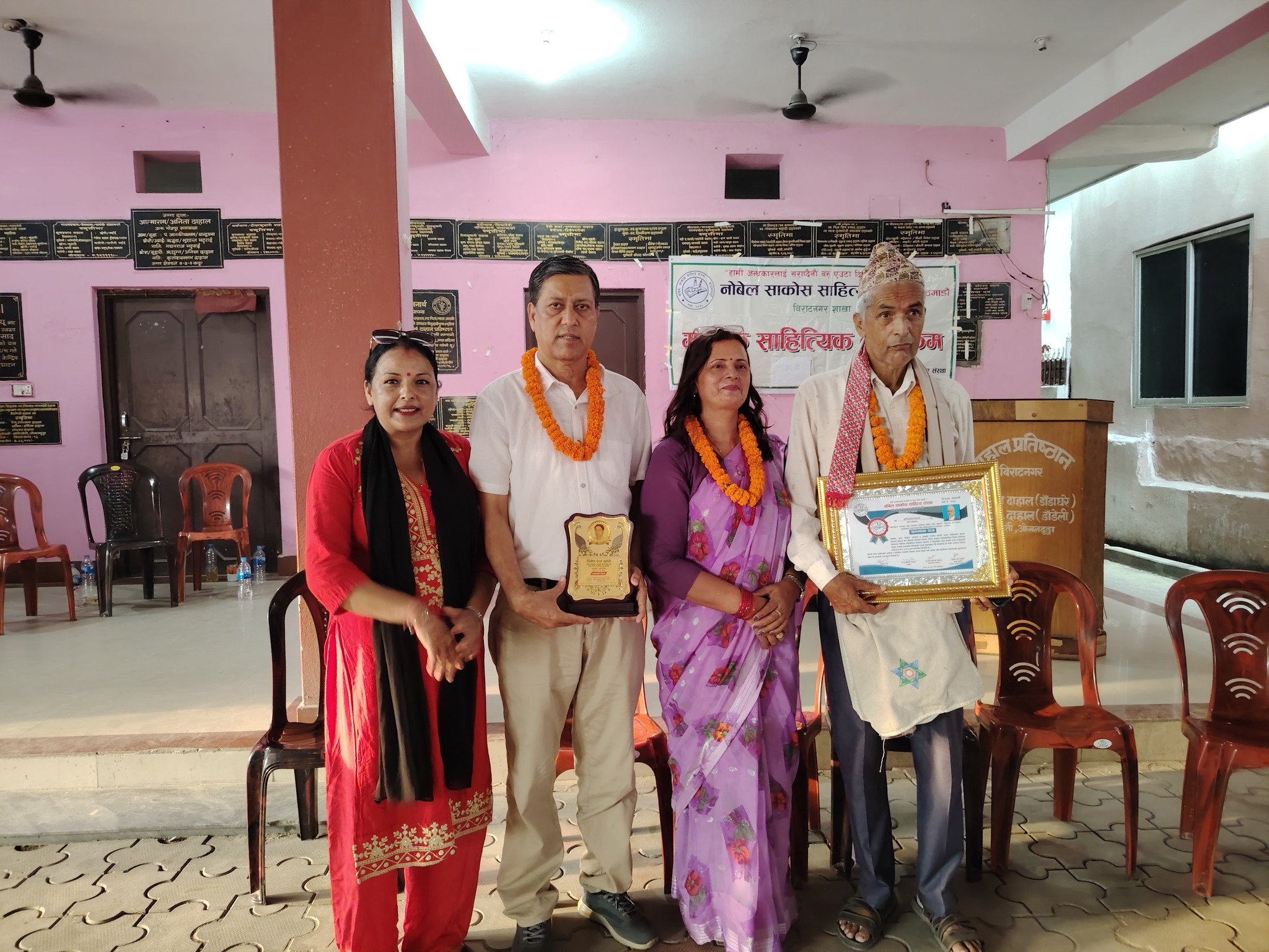विराटनगरः नोबेल साकोस साहित्य संस्था विराटनगर शाखाले गरेको नियमित रचनावाचन कार्यक्रमको ३७ औँ शृङ्खलामा समीक्षक हरिप्रसाद बराल सम्मानित हुनुभएको छ ।