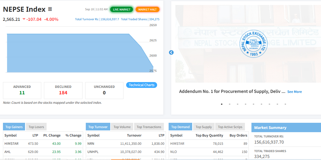 विराटचोकः जेन जी आन्दोलनपछि पहिलो पटक आज खुलेको शेयर बजार बजार खुल्नासाथ राताम्य भएको छ ।