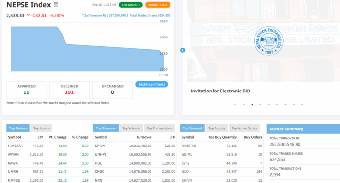पहिलो सर्किट लाग्दा बजार १०७ अङ्कले घटेको थियो । दोस्रो सर्किटमा आइपुग्दा नेप्से १३३ अंकले घटेको छ ।