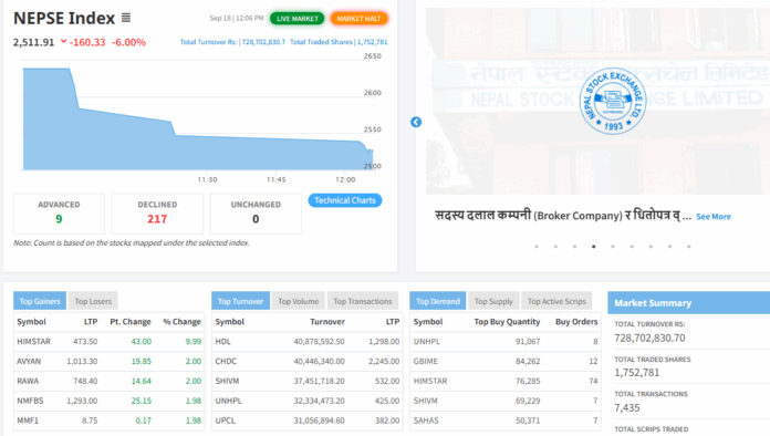 आज नेप्से परिसूचक १६० दशमलव ३३ अङ्क घटेर २५११ दशमलव ९१ बिन्दुमा अडिएको छ ।