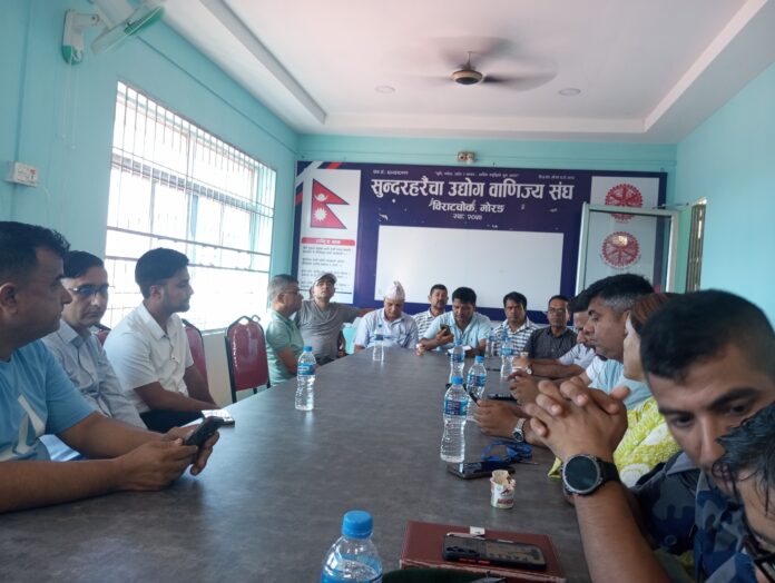 विराटचोकः अहिलेको विषम परिस्थितिमा व्यवसायीलाई भयरहित वातावरणमा व्यापार–व्यवसाय गर्न सहयोग पुर्याउने उद्देश्यले सुन्दरहरैँचा उद्योग वाणिज्य संघले चार्डपर्वलाई लक्षित गर्दै शान्ति–सुरक्षासम्बन्धी छलफल कार्यक्रम सम्पन्न गरेको छ ।