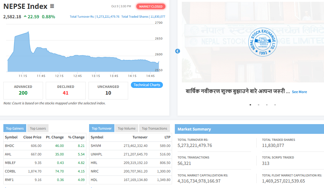 गत साता ३ कारोबार दिनका लागि बजार खुलेको थियो । जसमध्ये १ करोबार दिन नेप्से बढेको थियो भने २ कारोबार दिन नेप्से घटेर बन्द भएको थियो । दशैंपछि खुलेको बजारमा बिक्री दबाब परेपछि घटेको बजार यो साता कस्तो रहने हो भन्ने लगानीकर्तामा खुल्दुली रहेको छ ।