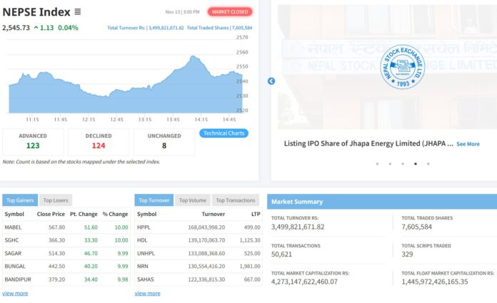 यो साता ७ कम्पनीको ५ करोड ३ लाख ३७ हजार ५५० कित्ता शेयर नेप्सेमा सूचीकृत भएको छ । झापा इनर्जी, बुङ्गल हाइड्रो, बन्दीपुर केबलकार एण्ड टुरिजम र स्वस्तिक लघुवित्त वित्तीय संस्थाको आईपीओ नेप्सेमा सूचीकृत भएको हो । बरुण हाइड्रोपावरको हकप्रद शेयर र शाइन रेसुङ्गा डिबेञ्चर र ७ प्रतिशत नबिल डिबेञ्चर २०८९ पनि नेप्सेमा सूचीकृत भएको छ ।
