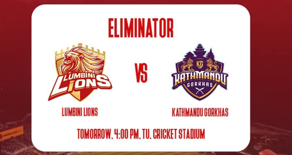 विराटचोकः सिद्धार्थ बैंक नेपाल प्रिमियर लिगको एलिमिनेटर खेल आज काठमान्डु गोर्खाज् र लुम्बिनी लायन्सबीच साँझ ४ बजे हुँदैछ ।