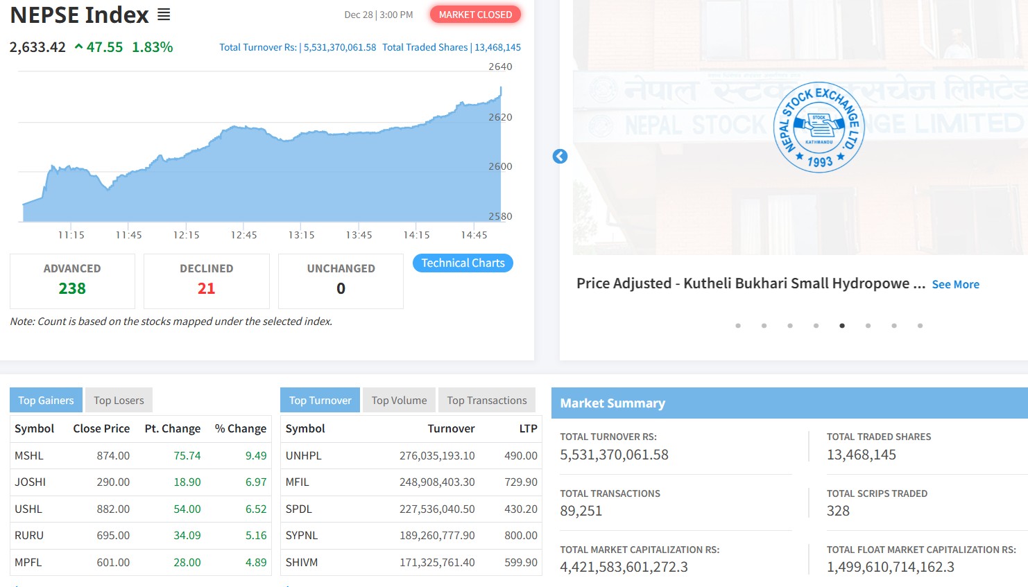 बजार बढेसँगै समग्र बजार पूँजीकरण ४४ खर्ब २१ अर्ब ५८ करोड ३६ लाख १ हजार २७२ रुपैयाँ निर्धारण भएको छ ।