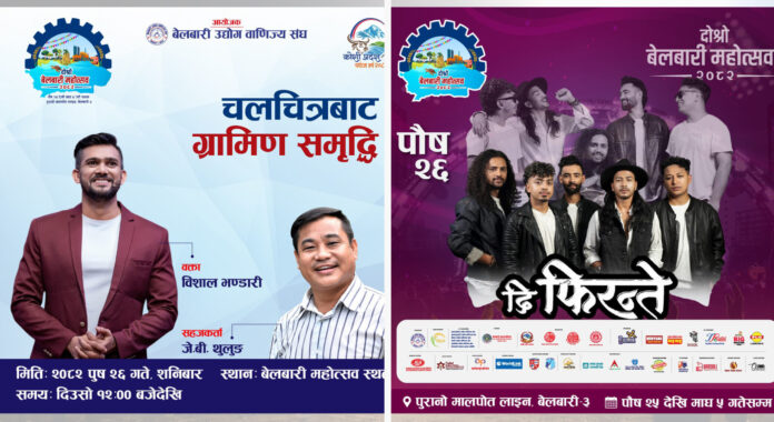 विराटचोकः हिजोदेखि दोस्रो बेलबारी महोत्सव शुरु भएको छ । महोत्सवको कोशी प्रदेशका स्वास्थ्य मन्त्री मानबहादुर लिम्बूले उद्घाटन गर्नुभएको छ । आयोजक बेलबारी उद्योग वाणिज्य संघका अनुसार महोत्सवमा दिनहुँ नयाँ नयाँ विषयमा बहस कार्यक्रम हुनेछन् भने साँझमा साङ्गीतिक प्रस्तुति रहने भएका छन् ।