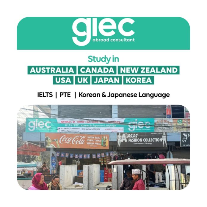 विराटचोकः काठमाडौंबाट वैदेशिक शिक्षासम्बन्धी परामर्श सेवा दिइरहेको जीआईईसी कन्सल्टेन्सीले मोरङको सुन्दरहरैंचा–९ विराटचोकबाट पनि आफ्नो सेवा शुरु गरेको छ ।