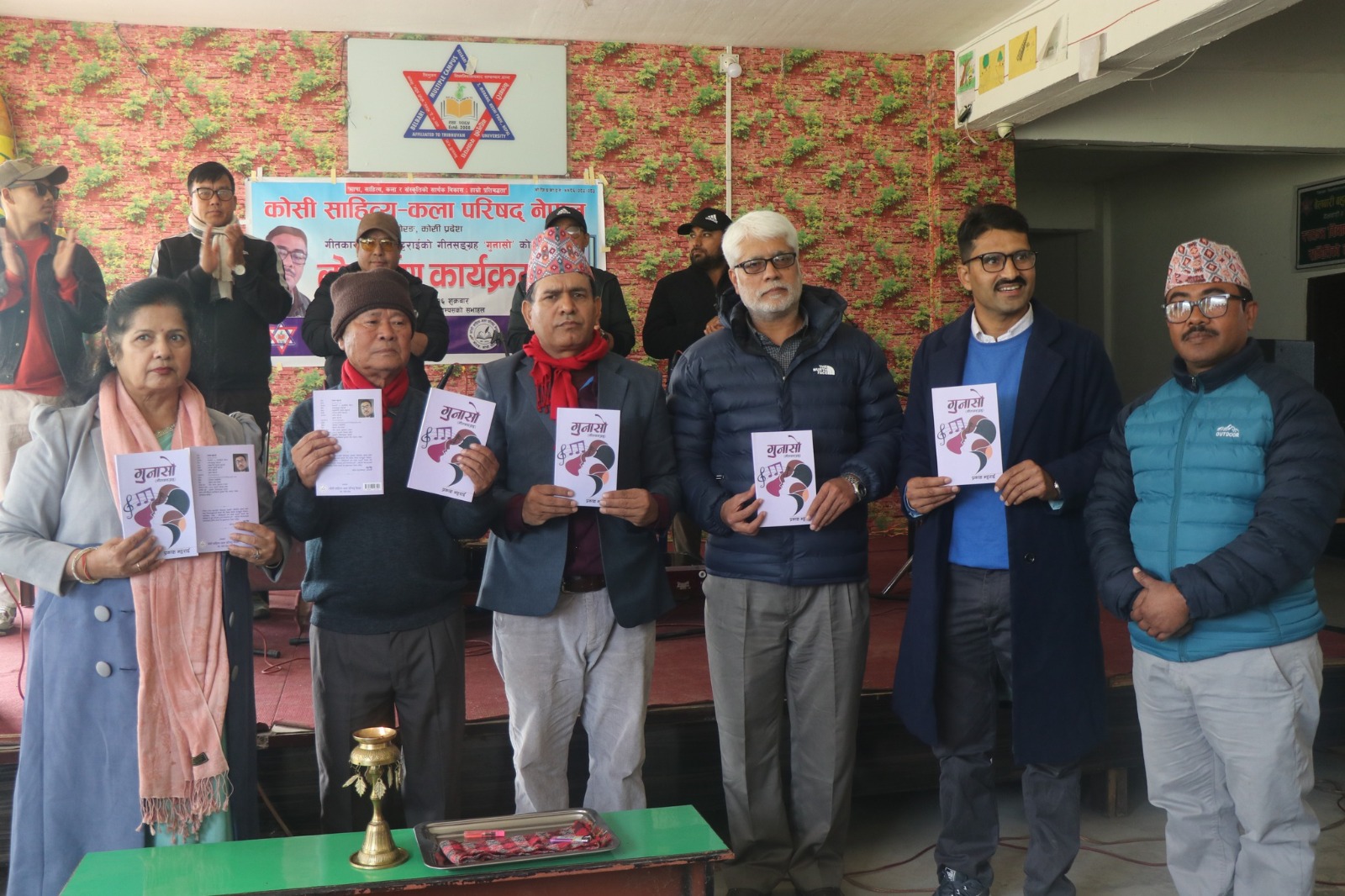 कोसी साहित्य, कला परिषद् नेपालको आयोजनामा बेलबारी बहुमुखी क्याम्पसको सभाहलमा सम्पन्न कार्यक्रममा प्राज्ञ गङ्गा सुवेदी, कृतिमाथिका वक्ता प्रा. डा. भीम खतिवडा, कृष्ण उदासी, साहित्यकार हर्कमान तामाङ, कोसी साहित्य, कला परिषद्का अध्यक्ष केशु विरहीलगायतले कृतिको विमोचन गर्नुभएको हो ।