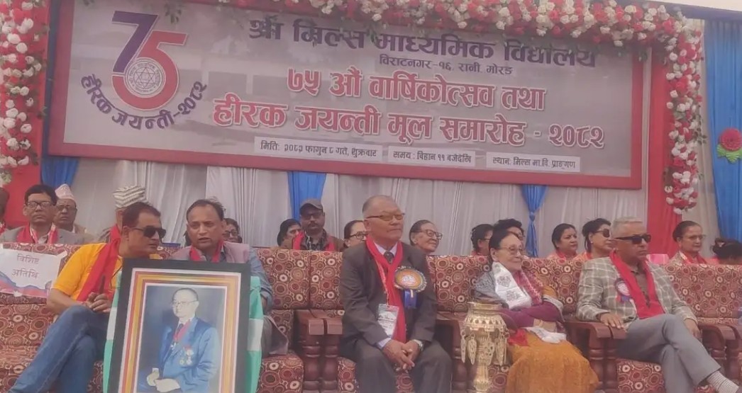 विराटनगरः विराटनगर–१६, रानीस्थित श्री मिल्स माध्यमिक विद्यालयले आफ्नो ७५ औँ वार्षिकोत्सव तथा हीरक जयन्ती साताव्यापी विविध कार्यक्रमका साथ भव्य रूपमा मनाएको छ ।