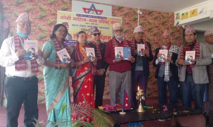 कोसी साहित्य–कला परिषद् नेपालको आयोजनामा बेलबारी बहुमुखी क्याम्पसको सभाहलमा बिहीबार सम्पन्न कार्यक्रममा प्रमुख अतिथि नेपाल संस्कृत विश्वविद्यालयका पूर्व शिक्षाध्यक्ष प्रा.डा. भीम खतिवडा, कार्यक्रमका सभाध्यक्ष कोसी साहित्य–कला परिषद् नेपालका अध्यक्ष केशु विरही, कवि तथा समालोचक डा. दीपकप्रसाद न्यौपाने, बेलबारीका अग्रज स्रष्टा, हर्कमान तामाङ, लेखक नवशिला तथा उहाँका पिता लक्ष्मीप्रसाद पोखरेल र माता दुर्गादेवी पोखरेलले संयुक्त रूपमा कृतिको लोकार्पण गर्नुभएको हो ।