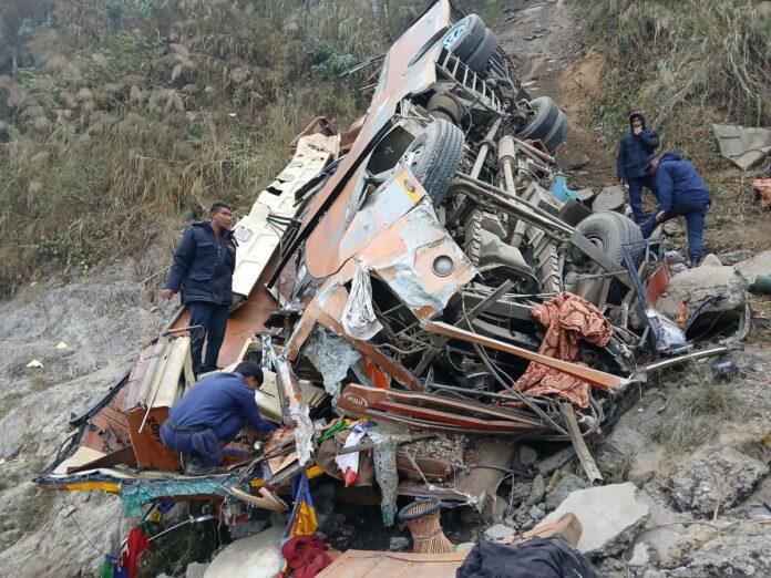 काठमाडौंः आज बिहान साढे १ बजे धादिङको बेनिघाट रोराङ गाउँपालिका–५ भैसीगौडास्थित पृथ्वी लोकमार्गमा ग २ ख १४२१ नम्बरको बस दुर्घटना हुँदा मृत्यु हुनेको संख्या १९ जना पुगेको जिल्ला प्रहरी कार्यालय धादिङले जनाएको छ ।