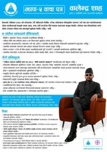 दमकः प्रतिनिधिसभा सदस्यका लागि झापा निर्वाचन क्षेत्र नम्बर ५ बाट उम्मेद्वारी दिएका राष्ट्रिय स्वतन्त्र पार्टी (रास्वपा)का वरिष्ठ नेता बालेन शाहले आज चुनावी वाचापत्र सार्वजनिक गर्नुभएको छ ।