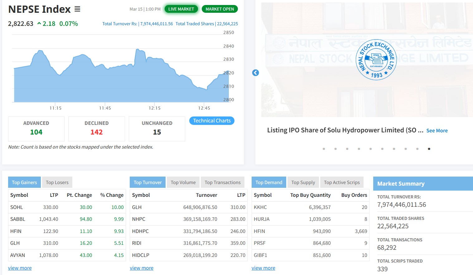 त्यसपछि बजारमा सुधार हुँदै जाँदा १ बजे २८२२ भन्दा माथि सूचक पुगेर कारोबार भइरहेको हो ।