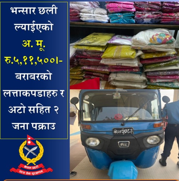 प्रहरीका अनुसार अटोमा लोड भएको ४ लाख ३२ हजार रुपैयाँ बराबरको कुर्तासुरुवाल बरामद भएको हो ।