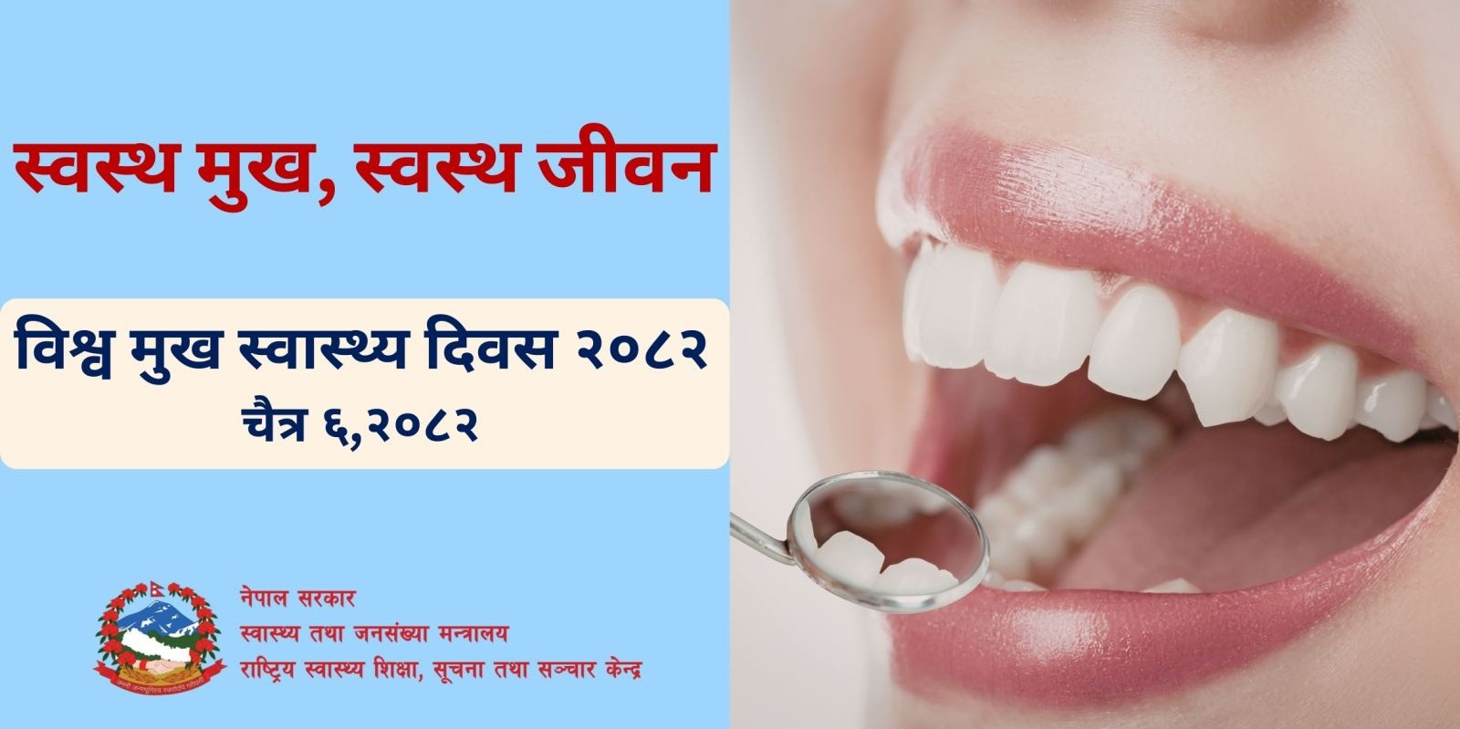 नेपाल सरकारको राष्ट्रिय मुख स्वास्थ्य रणनीति (२०८१–२०८७) को दीर्घकालीन सोच “स्वास्थ्य मुख, सुन्दर शरीर” रहेको छ ।