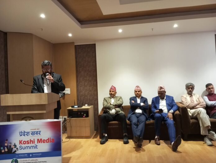 इटहरीः आइतबार इटहरीमा आयोजित ‘कोशी मिडिया समिट’ १४ बुँदे घोषणापत्र जारी गर्दै सम्पन्न भएको छ । कोशी प्रदेशका पत्रकार, सञ्चार उद्यमीलगायतको सहभागितामा नयन एडभरटाइजिङ मिडिया प्रालिद्वारा सञ्चालित प्रदेश खबर डटकमको आयोजनामा सम्मेलन भएको हो ।