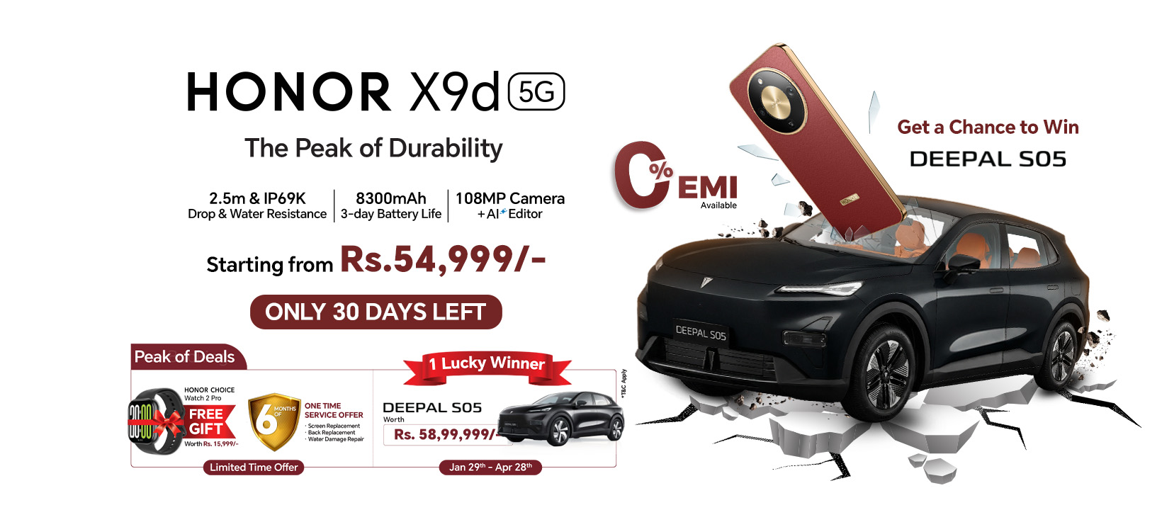 ३० दिनका लागि नेपालभर आफ्नो अहिलेसम्मकै सबैभन्दा ठूलो अभियान सञ्चालन गरेको जनाएको कम्पनीले स्मार्टफोनभन्दा बढी मूल्य प्रदान गर्ने उद्देश्यले डिजाइन गरिएको जनाएको छ । यस अभियानले नवीनता र आकांक्षाको संयोजन प्रस्तुत गर्ने पनि कम्पनीले जनाएको छ । २.५ मिटर ड्रप रेसिस्टेन्स, आईपी ६९ के वाटर रेसिस्टेन्स र ८३०० एमएएच ब्याट्रीका लागि परिचित होनोर एक्स ९ डी अब आकर्षक बन्डल अफरहरूसँगै प्रिमियम इलेक्ट्रिक एसयूभी घर लैजाने अवसरसहित आएको कम्पनीको भनाइ छ ।