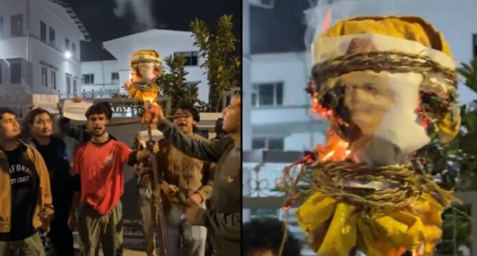 प्रदर्शनका क्रममा आक्रोशित समूहले पार्टी केन्द्रीय कार्यालयअगाडि महासचिव पोखरेलको पुतला दहन गरेको थियो ।