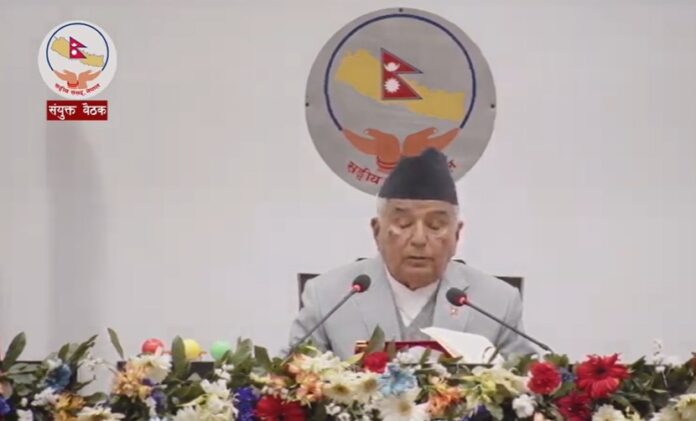 विराटचोकः राष्ट्रिय सभा र प्रतिनिधि सभाको आजको बैठकलाई सम्बोधन गर्दै राष्ट्रपति रामचन्द्र पौडेलले जनताको भावना अनुसार नयाँ बनेको सरकारले जनकल्याणकारी कानुन निर्माण र त्यसको परिणाममुखी कार्यान्वयनको काम गर्नेमा आफू विश्वस्त रहेको बताएका छन् ।