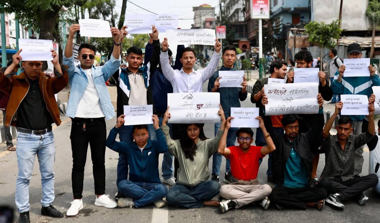 उनीहरूले सुनखानी प्रधानमन्त्री, शेयर खानी गृहमन्त्री, झन्डा नीलो मन्त्रिपरिषद् पहेँलो, मन्त्रीहरूलाई सुनको बहार जनतालाई महँगी उपहार लगायत विभिन्न नारा उल्लिखित प्लेकार्ड प्रदर्शन गरेका थिए ।