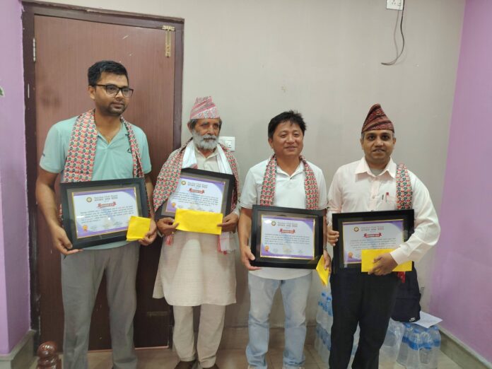 उर्लाबारीः सञ्चार क्लब नेपालको २२ औँ वार्षिक साधारण सभा तथा अधिवेशनको अवसर पारेर आज चार जना पत्रकारलाई विभिन्न पुरस्कार प्रदान गरिएको छ । पत्रकारहरूको योगदानको कदर गर्दै नगद तथा सम्मानपत्रसहित पुरस्कृत गरिएको हो ।