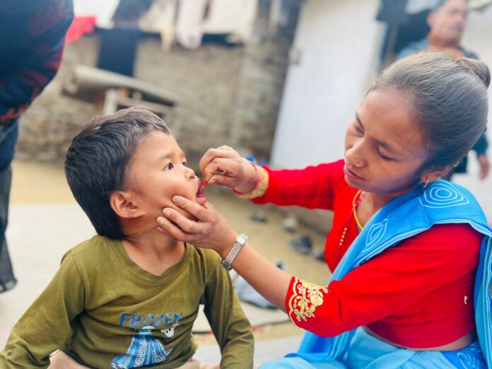 विराटचोकः देशभर सरकारले आइतबार र सोमबार ६ महिनादेखि ५९ महिनासम्मका करिब २२ लाख बालबालिकालाई भिटामिन ‘ए’ क्याप्सुल र जुकाको औषधि खुवाइरहेको छ ।