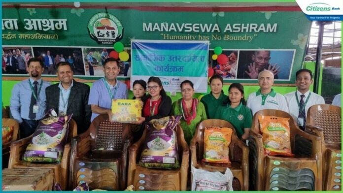विराटनगरः सिटिजन्स बैंक इन्टरनेसनल लिमिटेडले विराटनगरमा अवस्थित मानव सेवा आश्रमलार्ई सहयोग प्रदान गरेको छ । बैंकले संस्थागत सामाजिक उत्तरदायित्व अन्तर्गत उक्त सहयोग प्रदान गरेको हो । सय जनाभन्दा बढी बेसहारा नागरिकहरुलाई आश्रय दिइरहेको सो संस्थालाई बैंकले दैनिक उपभोग्य खाद्यान्न सामाग्री लगायत अन्य आवश्यक सामाग्रीहरु उपलब्ध गराएको जनाएको छ ।