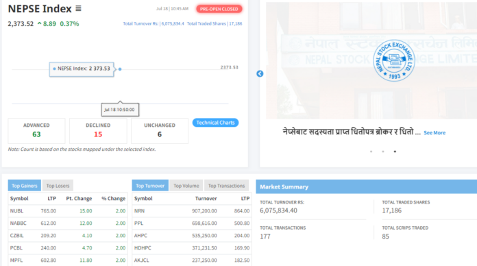 विराटचोकः साताको अन्तिम कारोबार दिन आज प्रि ओपनमा शेयर बजार मापक नेप्से ८ दशमलव ८९ अंक अर्थात् ० दशमलव ३७ प्रतिशत बढेको छ ।