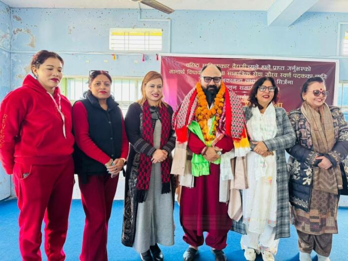 विराटचोकः अमेरिकाको विश्वविद्यालयबाट हालै मानार्थ विद्यावारिधी उपाधि पाउनुभएका साहित्यार छवि वैरागी घिमिरेलाई सुन्दरहरैंचाका ४ वटा साहित्यिक संस्थाले सम्मान गरेका छन् । उहाँले मानार्थ विद्यावारिधीका साथै सामाजिक सेवा एवम् साहित्य गौरव स्वर्ण पदक प्राप्त गर्नुभएको अवसरमा आयोजना गरिएको स्रष्टा र सिर्जना सम्मिलन समारोहमा सुन्दरहरैंचा, बेलबारी, ग्रामथान, इटहरी, उर्लाबारीलागयतका साहित्यकार उपस्थित हुनुहुन्थ्यो ।