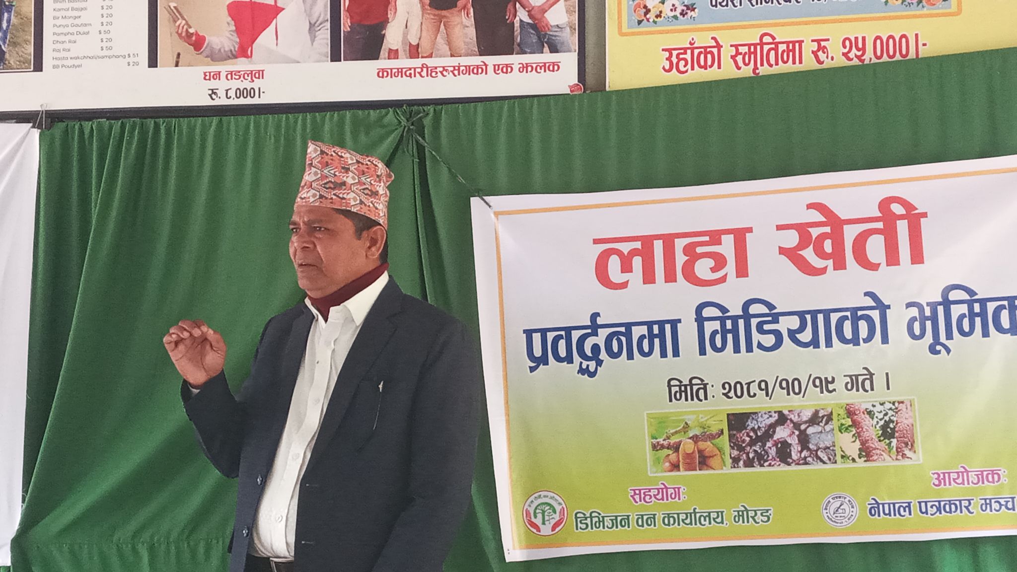 नेपाल पत्रकार मञ्च पथरीको आयोजना तथा डिभिजन वन कार्यालय मोरङको आर्थिक सहयोगमा भएको कार्यक्रमको प्रमुख अतिथि डिभिजन वन कार्यालय मोरङका प्रमुख उत्सव थापा रहनुभएको थियो । डिभिजन वन कार्यालय मोरङका पूर्वप्रमुख विष्णुलाल घिमिरे र लाहा खेती गर्ने किसान डम्बर विश्वकर्माले लाहा खेती, नेपालमा यसको अवस्था र सम्भावनाबारे पत्रकारलाई जानकारी दिनुभएको थियो ।