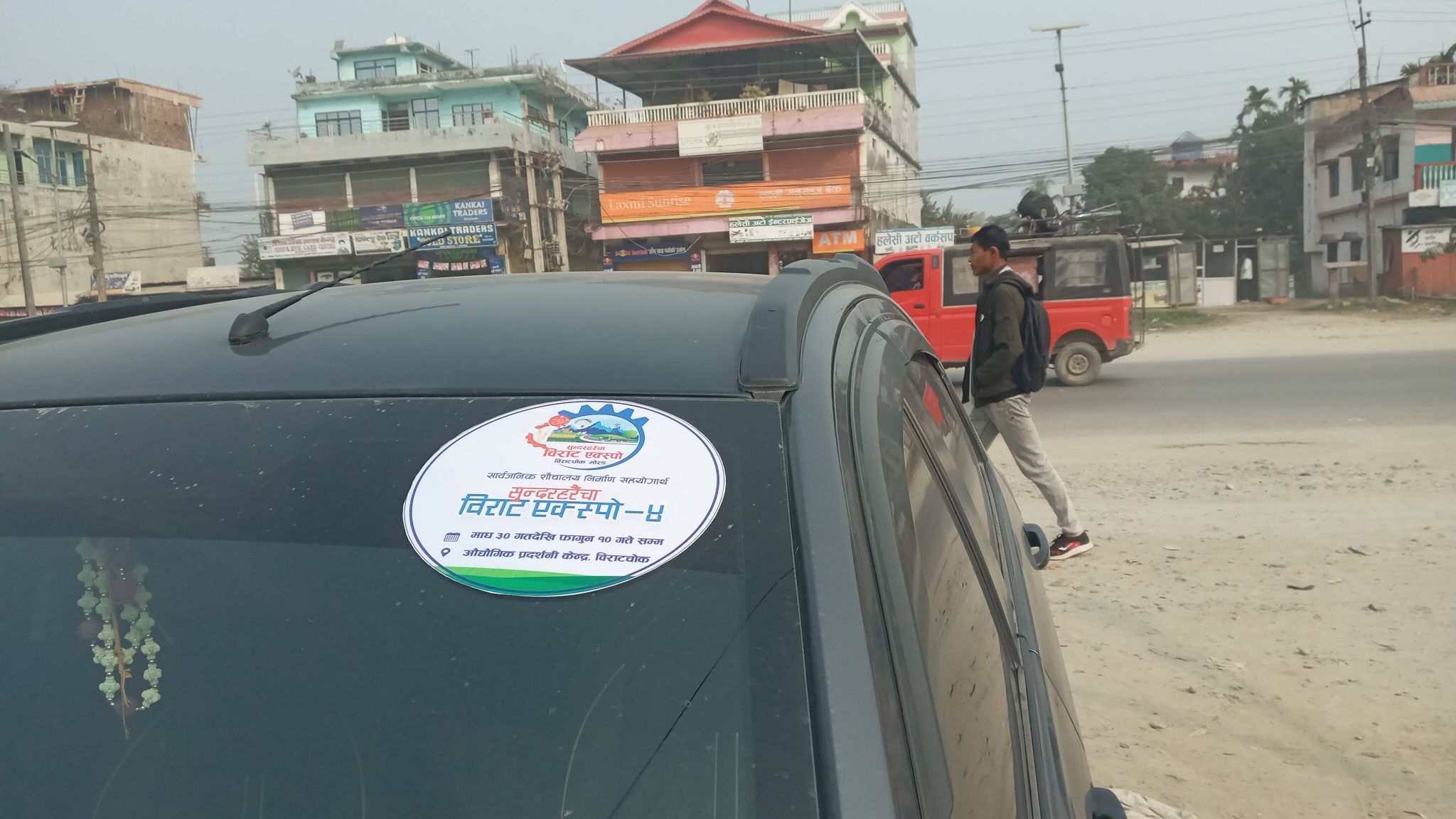 विभिन्न किसिमका स्टिकर बनाएर बस, कार, भ्यान, मोटरसाइकल, स्कुटर, सिटी सफारीलगायतका साधनमा टाँस्नुका साथै मोबाइलमा पनि त्यस्ता स्टिकर टाँस्ने गरिएको छ । घरघरमा पुग्ने सिटी सफारी, हातहातमा हुने मोबाइल र धेरै जनाले यात्रा गर्ने बसमा स्टिकर टाँस्दा प्रचारप्रसार व्यापक हुने भएकाले स्टिकर टाँस्ने अभियान अघि बढाइएको प्रचारप्रसार उपसमितिका संयोजक कृष्णप्रसाद ओझाले जानकारी दिनुभयो ।