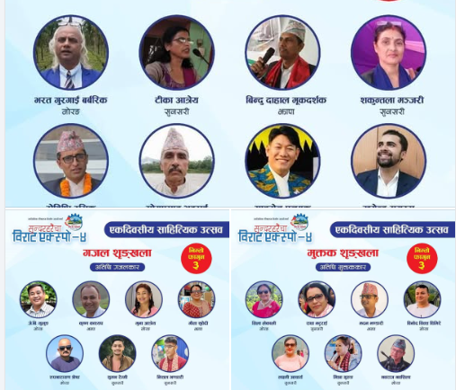 विराटचोकः सुन्दरहरैंचाको विराटचोकमा हुने सुन्दरहरैंचा विराट एक्स्पो ४ लाई आकर्षक बनाउन फागुन ३ गते साहित्यिक उत्सव हुने भएको छ । सो उत्सवमा झापा, मोरङ र सुनसरीका २२ जना साहित्यकारले भाग लिने भएका छन् ।