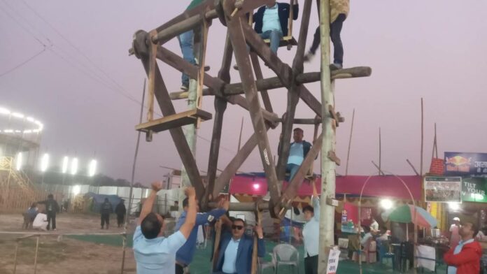 विराटचोकः उर्लाबारी उद्योग वाणिज्य संघको आयोजनामा फागुन १५ गतेदेखि सञ्चालित उर्लाबारी कृषि, औद्योगिक तथा पर्यटन महोत्सवको मुख्य आकर्षणको रुपमा रोटे पिङ रहेको छ ।