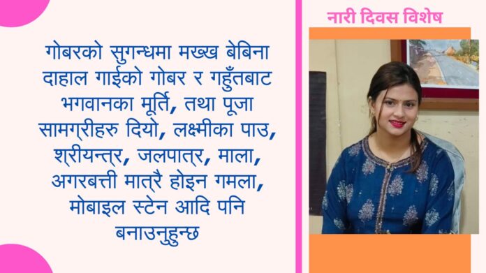 विराटनगरः जैविक मल र बायोग्यास उत्पादन तथा घर लिपपोत गर्न प्रयोग गरिने गाईको गोबरबाट पूजा सामग्रीका साथै भगवानका मूर्ति पनि बनाउन सकिन्छ भन्दा विश्वास नलाग्न सक्छ । सुन्दा यस्तै अपत्यारिलो काम गरेर चर्चा बटुल्दै हुनुहुन्छ विराटनगर– ५ बरगाछीकी बेबिना दाहाल ।