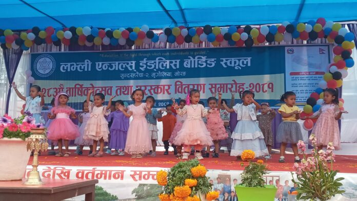 मृगौलियाः शनिबार मोरङको सुन्दरहरैंचा नगरपालिका वडा नं २ मा रहेको लभ्ली एन्जल्स इङ्लिस बोर्डिङ स्कुलको २८ औँ वार्षिकोत्सव तथा पुरस्कार वितरण कार्यक्रम सम्पन्न भएको छ ।