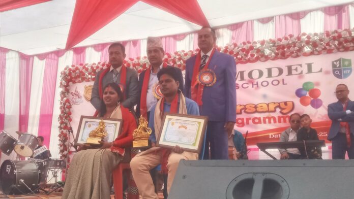 हरैंचाः सुन्दरहरैंचा नगरपालिका वडा नं १ मा रहेको हरैंचा मोडल इङ्ग्लिस सेकेण्डरी स्कुलको २२ औ वार्षिकोत्सव तथा अभिभावक दिवसमा विद्यालयकी शिक्षक र पूर्व विद्यार्थीलाई सम्मान गरिएको छ । शिक्षक पूजा साह र पूर्व विद्यार्थी रोशन झालाई सम्मान गरिएको हो । झा हाल भोजपुरको आमचोक गाउँपालिकाको स्वास्थ्य चौकी प्रमुखको रुपमा कार्यरत हुनुहुन्छ ।