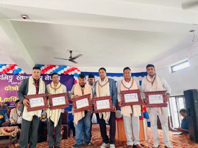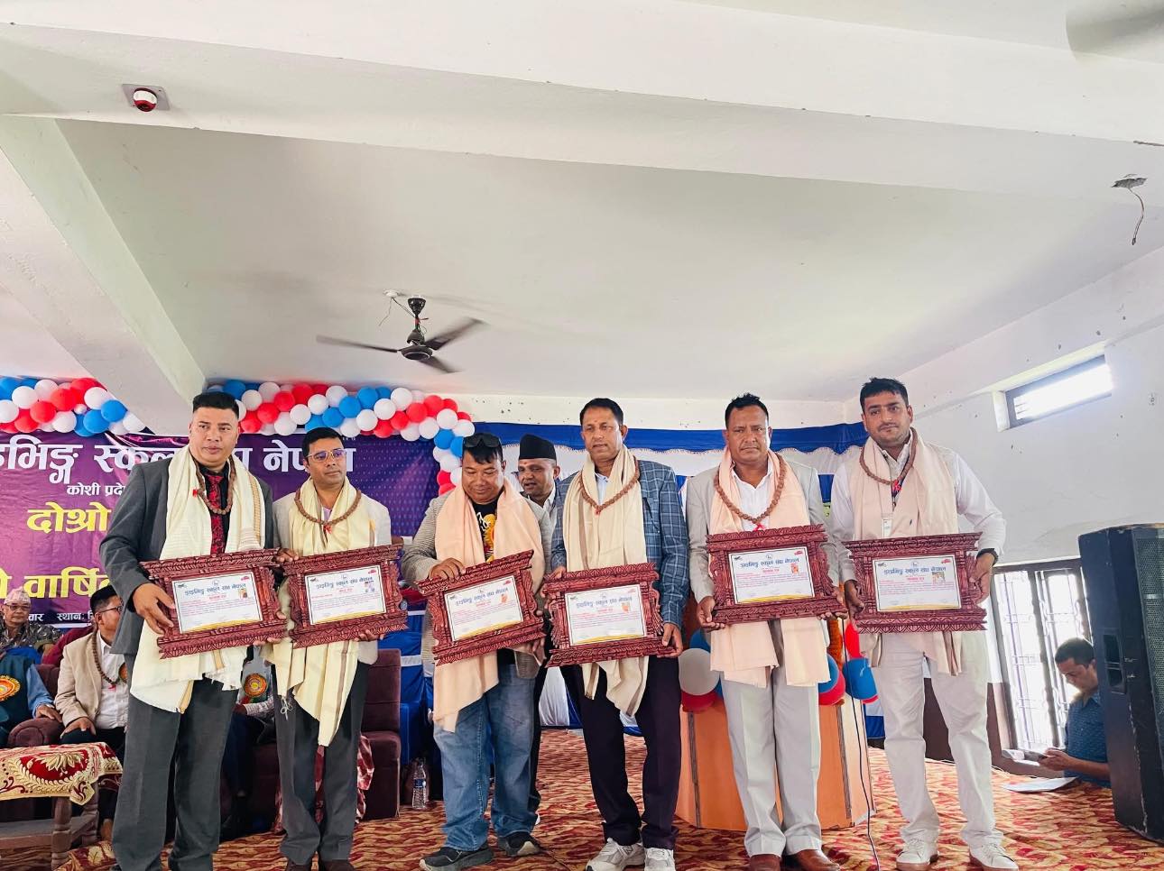 बाँसबारीः ड्राइभिङ स्कुल संघ नेपाल कोशी प्रदेशले आज आफ्नो पाँचौँ वार्षिक साधारण सभाको अवसरमा ९ जना व्यक्तिलाई सम्मान गरेको छ । उहाँहरुलाई कार्यक्रमका प्रमुख अतिथि कोशी प्रदेशका आन्तरिक मामिला तथा कानुन मन्त्री रेवतीरमण भण्डारीले सम्मान गर्नुभएको थियो ।