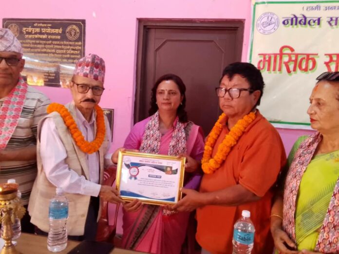 विराटनगरः नोबेल साकोस साहित्य संस्था विराटनगर शाखाले हिजो विराटनगरमा आयोजना गरेको नियमित रचनावाचन कार्यक्रममा डा. महावीर पुनलाई सम्मान गरिएको छ ।