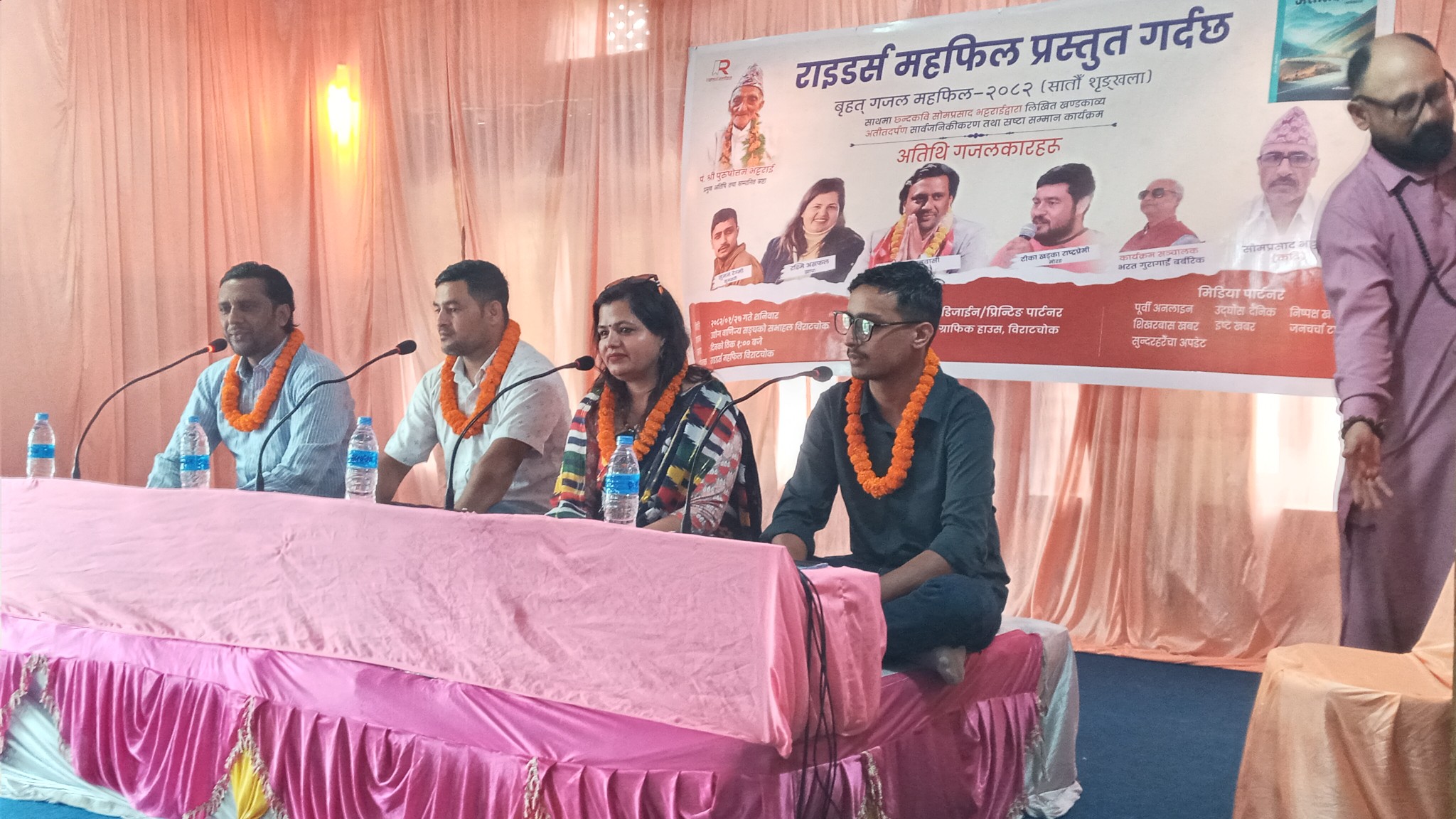 तीन चरणमा दुई ओटाका दरले एक जना गजलकारले ६ ओटा गजल सुनाएको सो कार्यक्रम राइडर्स महफिलको सातौँ शृङ्खलाका रूपमा रहेको महफिलका संयोजक यादव भट्टराईले जानकारी दिनुभयो ।