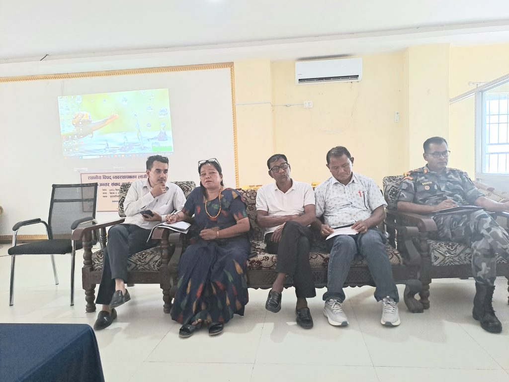 विपद् व्यवस्थापन शाखा प्रमुख वासुदेव अधिकारीले नगरपालिकाले विपद् क्षेत्रमा गरेका कार्य, नीतिगत पहल, समितिका अधिकार र कर्तव्यहरूबारे विस्तृत जानकारी दिनुभएको थियो ।