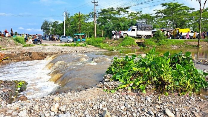 काँकरभिट्टाः अविरल वर्षासँगै हिजो आएको बाढीले बगाएको निर्माणाधीन ‘एसियन हाइवे’ को पूर्वी खण्डमा पर्ने ढुकुरे खोला र काली खोलाको डाइभर्सन बनाएर यातायातका साधन सञ्चालनमा ल्याइएको छ ।