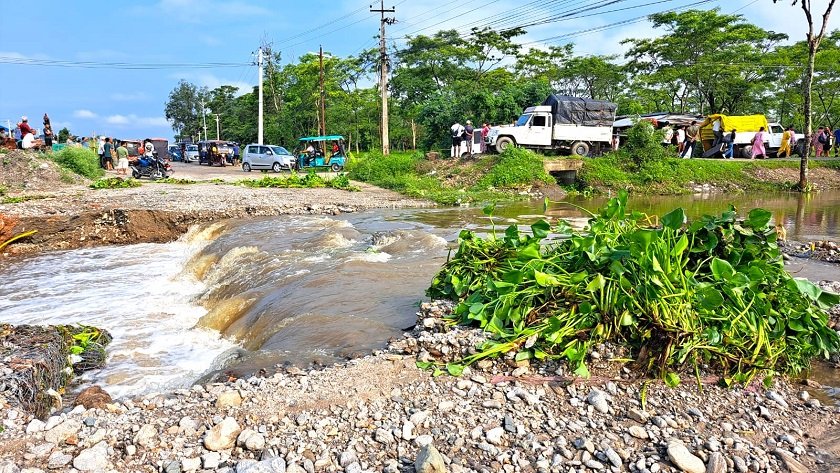 मेचीनगर नगरपालिकामा कालीखोला र ढुकुरे खोलाको डाइभर्सनमा बाढीले क्षति पुर्यापछि पुनः ती डाइभर्सन बनाएर यातायात सेवा सुचारु भएको हो ।