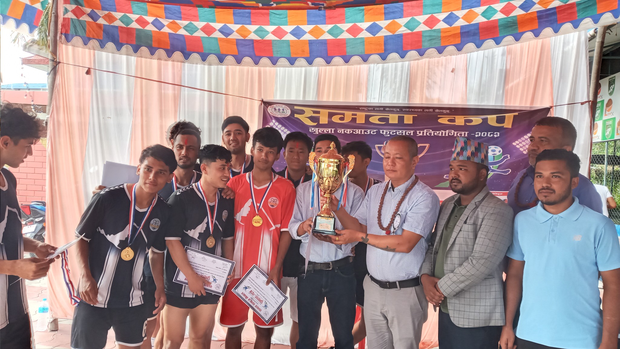 विराटचोकः समता समाज नेपाल सुन्दरहरैंचाको आयोजनामा भएको समता कप खुला नकआउट फुटसल प्रतियोगितामा योङ स्टार भाउन्ने विजयी भएको छ ।