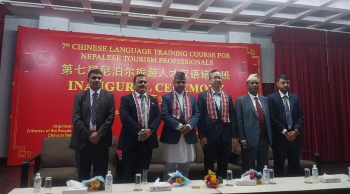 काठमाडौंः नेपालका पर्यटन पेशाकर्मीहरूका लागि चिनियाँ भाषा प्रशिक्षण शुरु भएको छ । नेपाल पर्यटन बोर्ड र नेपालस्थित चिनियाँ दूतावासको संयुक्त आयोजनामा बोर्डको सभाहलमा संस्कृति, पर्यटन तथा नागरिक उड्डयनमन्त्री बद्री प्रसाद पाण्डेले चिनियाँ भाषा प्रशिक्षणको सातौं ब्याचको उद्घाटन गर्नुभएको हो ।