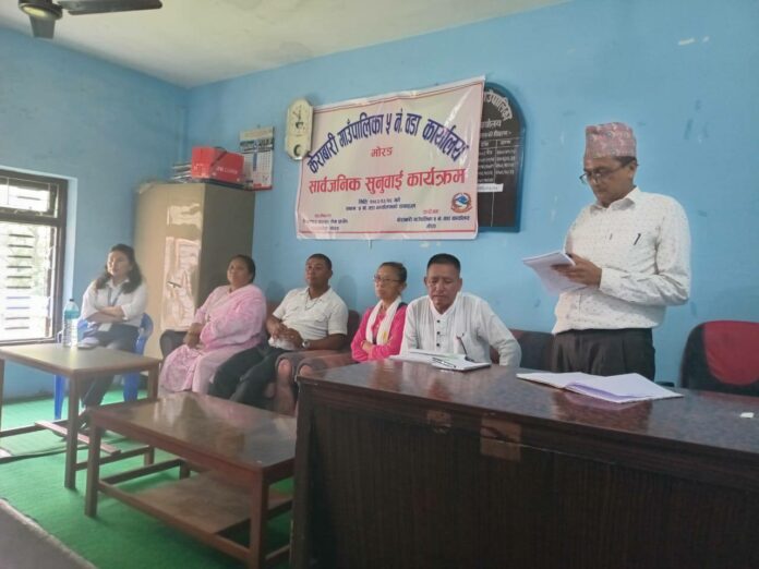 केराबारीः मोरङको केराबारी गाउँपालिकाको वडा नम्बर ५ को चालु आर्थिक वर्षको वडास्तरीय सार्वजनिक सुनुवाइ आइतबार वडा कार्यालय भवन परिसरमा सम्पन्न भएको छ ।