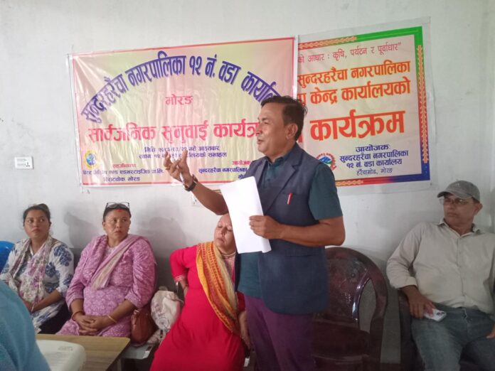 विराटचोकः आइतबार सुन्दरहरैंचा नगरपालिका वडा नम्बर १२ को सभाहलमा वडाको चालु आर्र्थिक वर्षको सार्वजनिक सुनुवाइ सम्पन्न भएको छ ।
